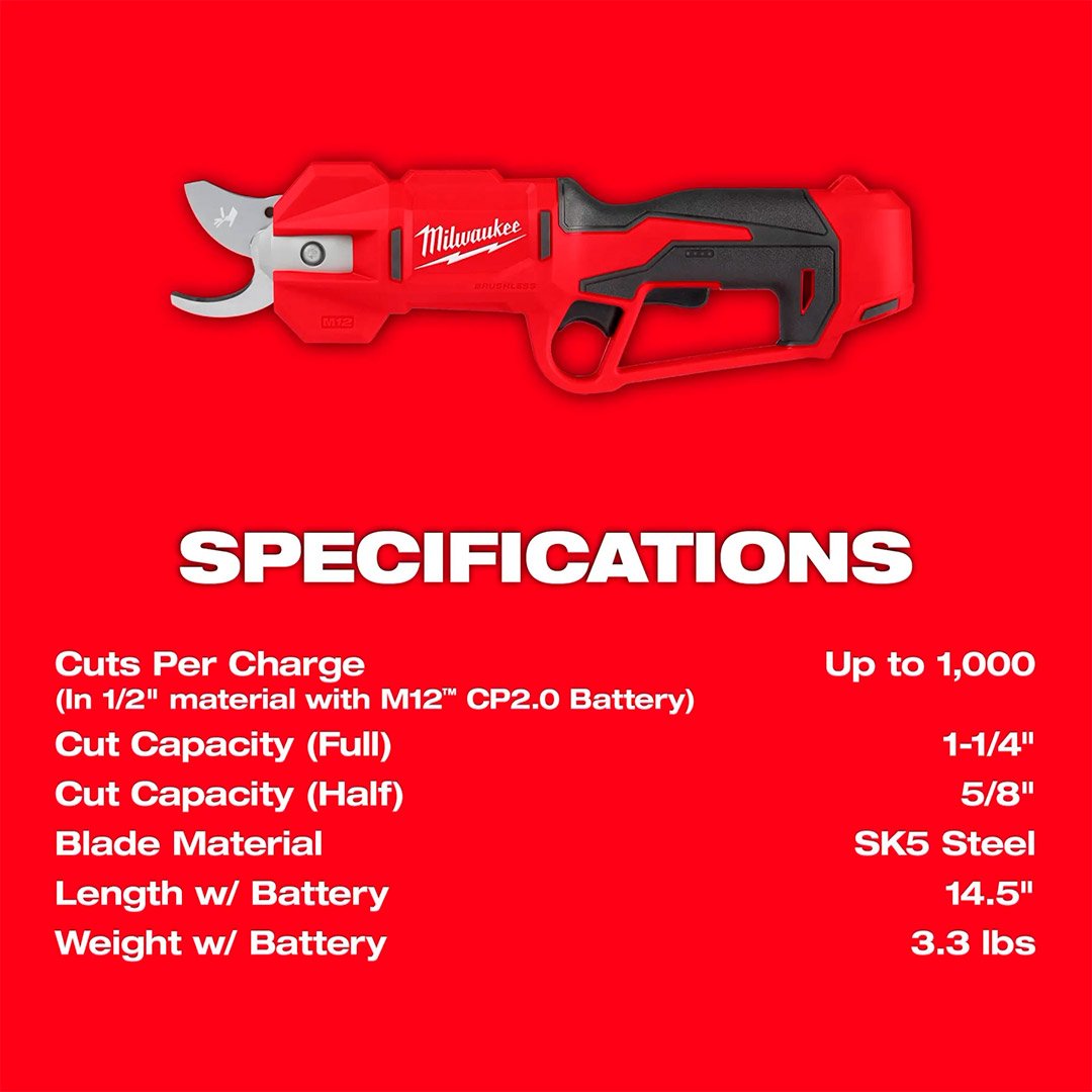 Las tijeras de podar sin escobillas M12™ ofrecen la poda más rápida y controlada, a la vez que reducen la fatiga. Estas tijeras ofrecen la potencia para cortar ramas de hasta 3,18 cm (1-1/4″) y permiten bloquear las cuchillas a la mitad de su capacidad mediante el panel de selección de modo, lo que aumenta la velocidad de corte en un 40 %. Las tijeras de podar sin escobillas M12™ reducen el esfuerzo muscular en un 75 % en comparación con las soluciones manuales, lo que permite a los usuarios realizar cortes difíciles con facilidad y rapidez. Nuestro control activo de cuchillas permite que el movimiento de la cuchilla siga el movimiento del gatillo, lo que proporciona un mayor control sobre la capacidad de corte durante la poda. Esto, combinado con la selección de modo y su diseño ligero y en línea, ofrece mayor accesibilidad y control en podas complejas. Al combinarse con la batería M12™ CP2.0, estas tijeras de podar realizan hasta 1000 cortes por carga en ramas de 1,27 cm (½»). Nuestras tijeras de podar sin escobillas M12™ son totalmente compatibles con más de 150 soluciones dentro del sistema M12™.