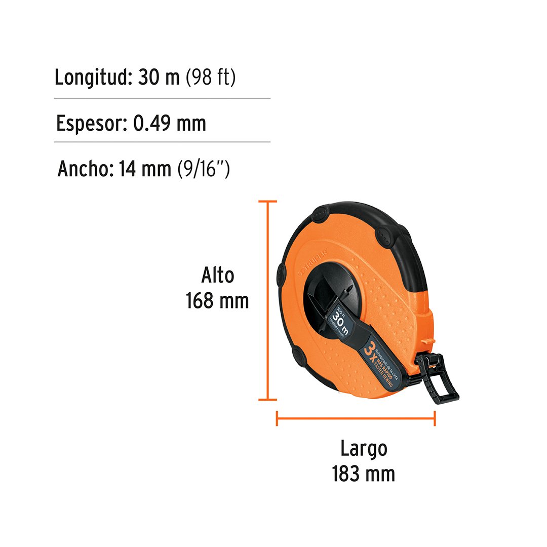 Wincha de fibra de vidrio 30 m carcasa plástica TRUPER 12639