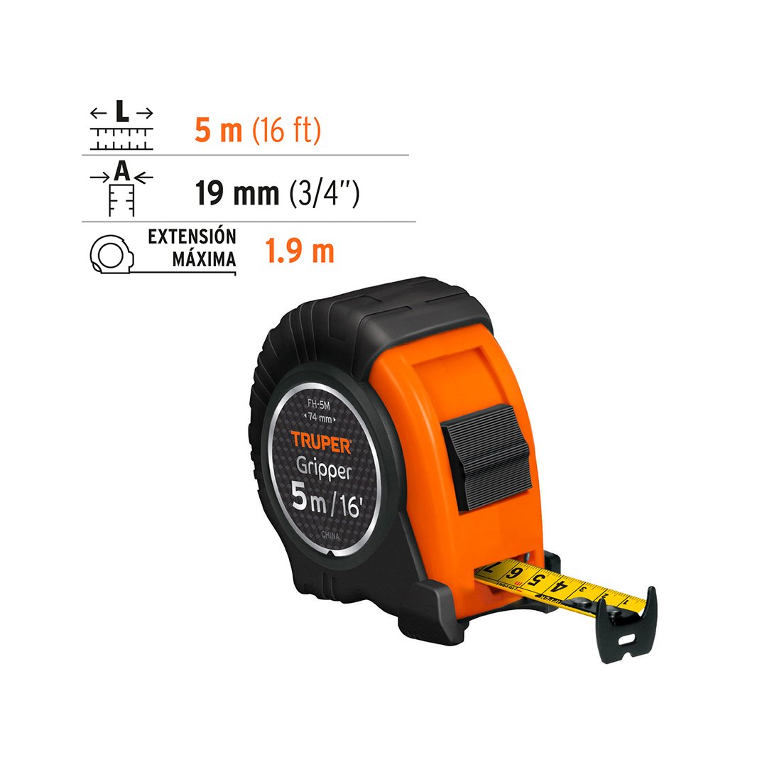 Wincha Gripper 5 m contra impactos TRUPER 14578