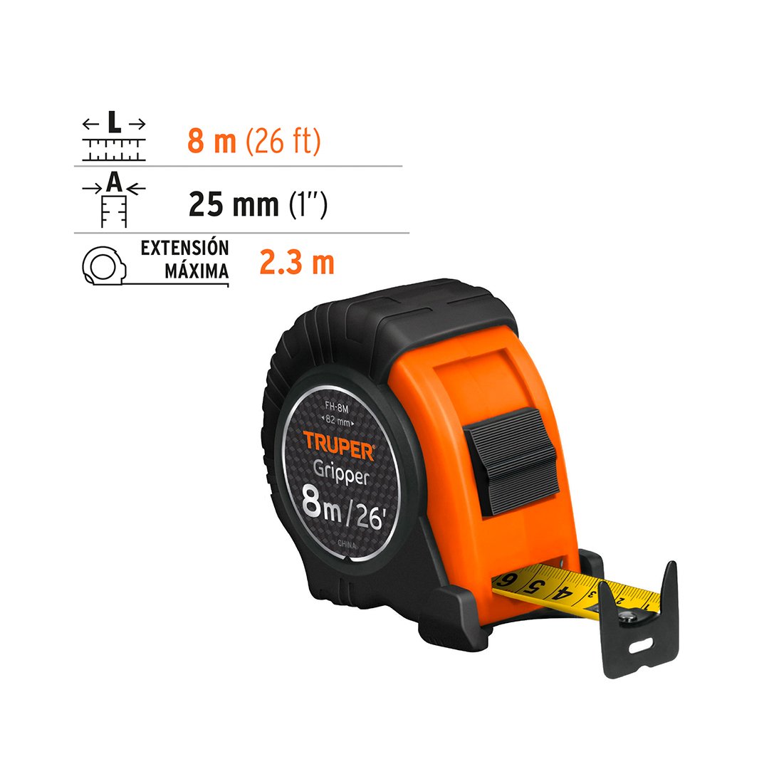Wincha Gripper 8 m contra impactos TRUPER